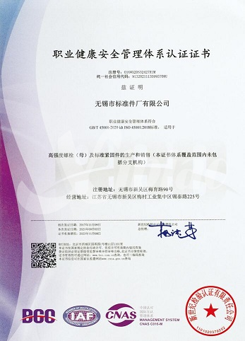 “ISO45001:职业健康安全管理体系认证”证书